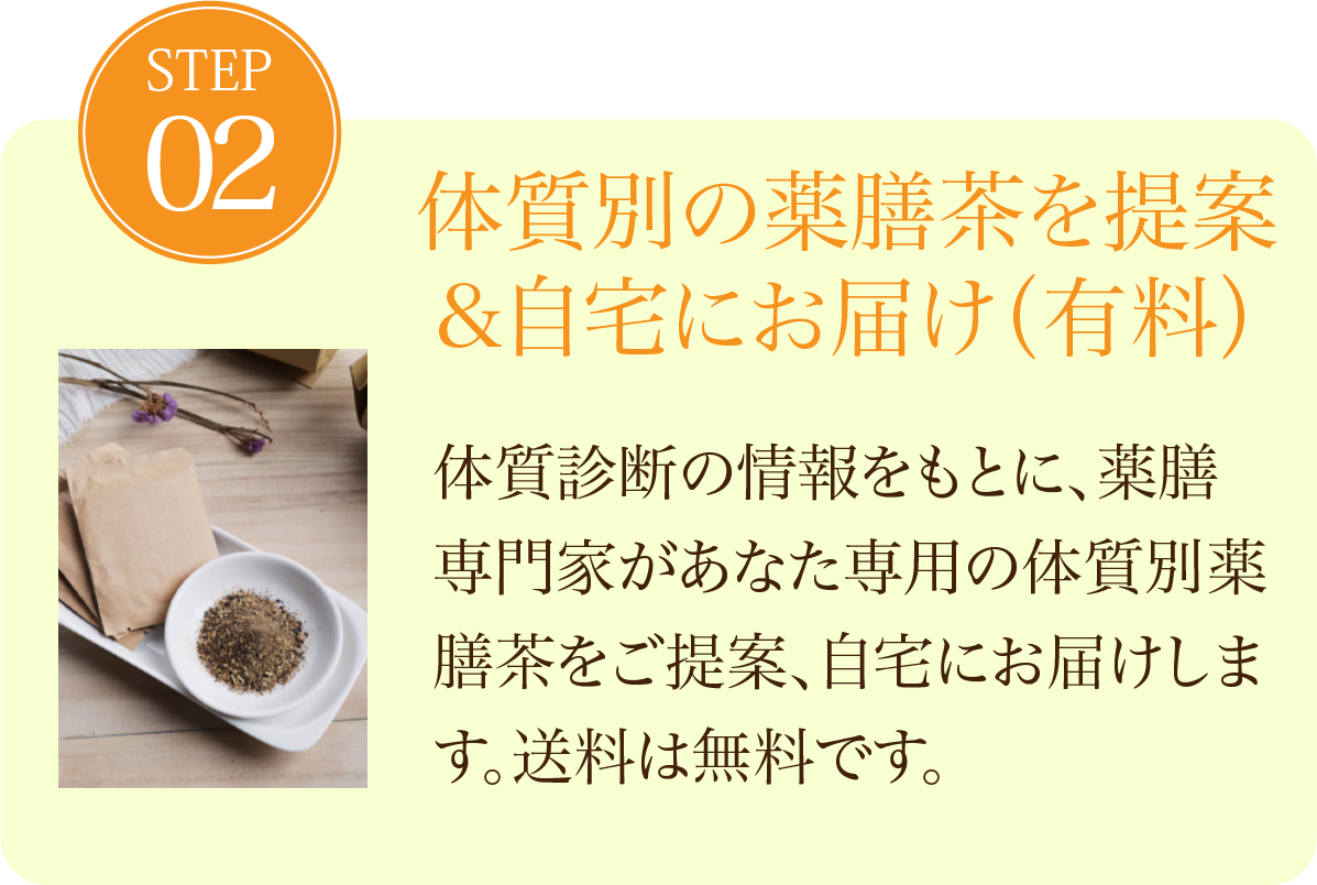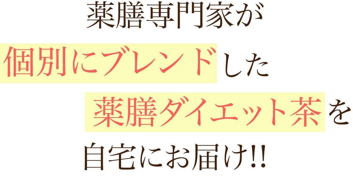 体質に合わせたパーソナル薬膳茶は、個人差はありますが1ヶ月で1キロ〜5キロほどの体重減少の報告をいただいております。外食や惣菜料理など、今まで生活習慣が乱れていた人ほど効果は大きいようです。また、何かしら体の変化や気持ちの変化を感じられる方が多いです。パーソナル薬膳茶は”健康的に痩せ体質を作る”を目的として作られたお茶です。 今日口にしたものは半年後の体を作ると言われていますので、日々口にしている珈琲や紅茶を薬膳茶に変えてみてください。少しずつ変化が感じられるでしょう。